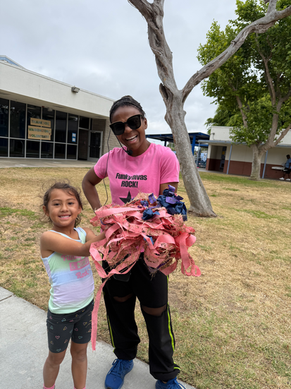 Miss Courtney was back at it, picking up long strips of used tape with the kids to help them be cooperative and have care to the our mother nature!